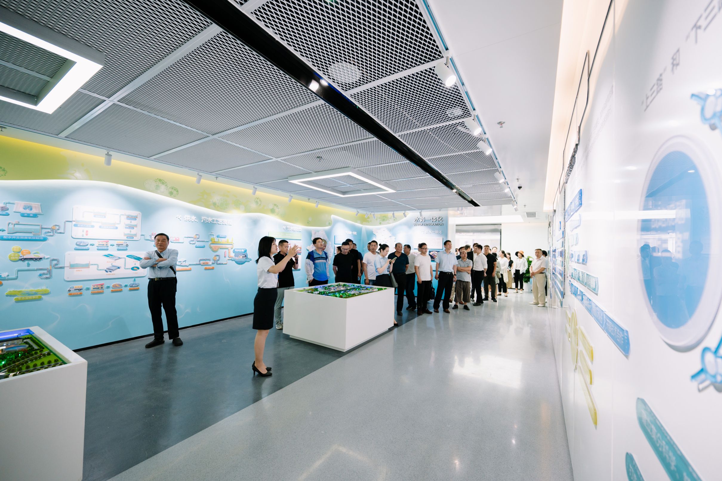 在新自來水廠的運維調度管理中心,還有一個集展示、宣傳、體驗、教育為一體的供排水教育基地。作為南京市生態文明教育基地,供排水教育基地以“水務宣導、治水興水科普”為建設目標,圍繞集團業務的兩大特色——“水務一體化”“綠色生態一體化”,從“水之名-以水定需”“水之理-因水制宜”“水之靈-量水而行”三個篇章,向公眾展示了集團原水、制水、售水、排水、污水及大氣監測全水務環保產業鏈、創新鏈。同時圍繞“知水-愛水-惜水-護水-節水”和環境保護教育相關內容,向公眾傳播了節水護水的相關知識。