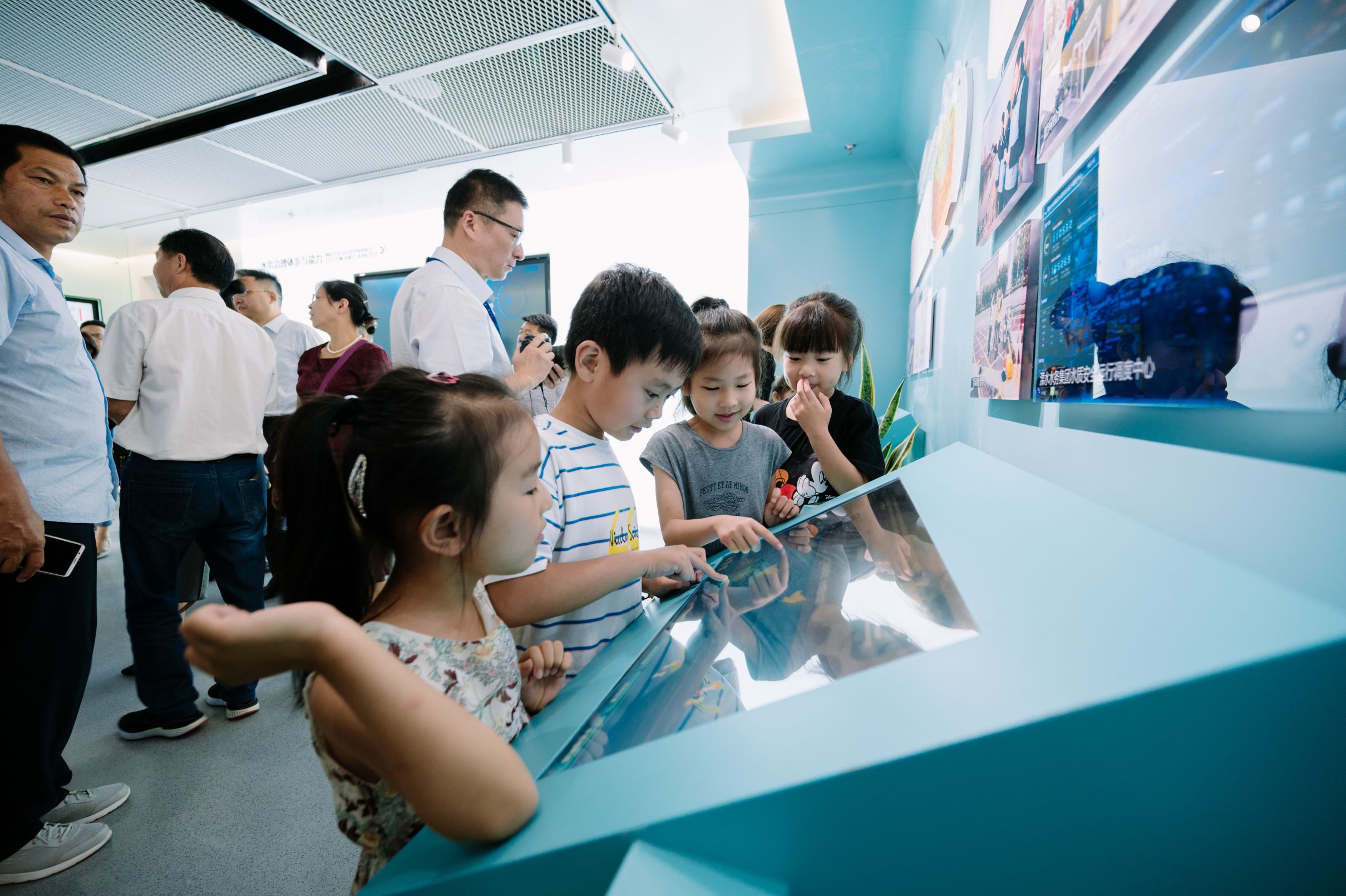 展示區門口,智能化的機器人“水溧寶”因可愛的外形受到參觀群眾的喜愛。展廳內,新穎的設計、靚麗的水環境水生態組圖、有趣的科普動畫 、科技感十足的互動屏,寓教于樂,讓參觀群眾直呼十分過癮。“真是太好玩了!”現場參觀的小朋友們流連忘返。