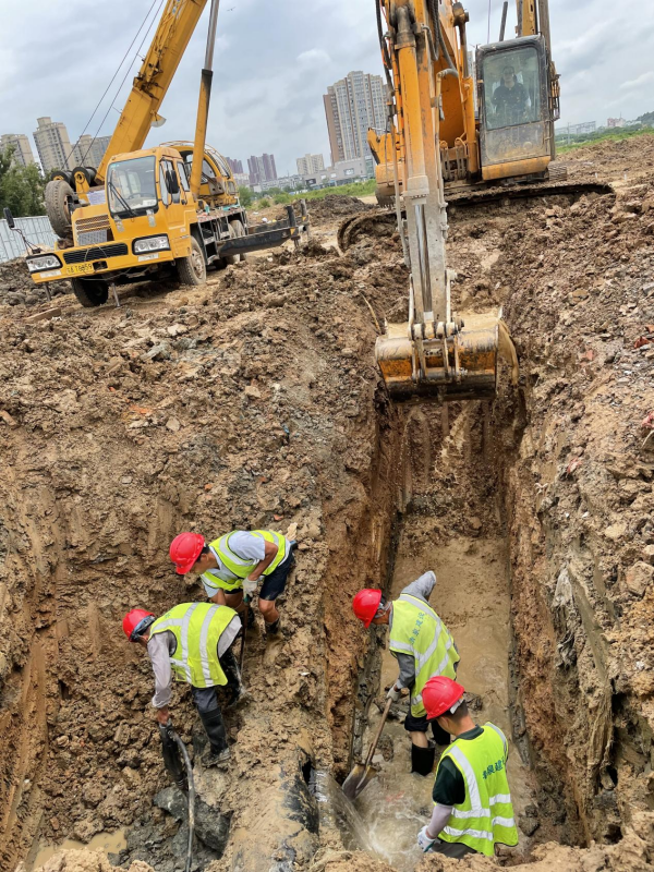 7月24日上午11:10,管線(xiàn)運(yùn)維中心接到報(bào)修電話(huà),寶塔路華僑城DN500供水主管道被挖破。管線(xiàn)運(yùn)維中心第一時(shí)間組織搶修力量,以最快速度趕赴現(xiàn)場(chǎng)開(kāi)展搶修工作。