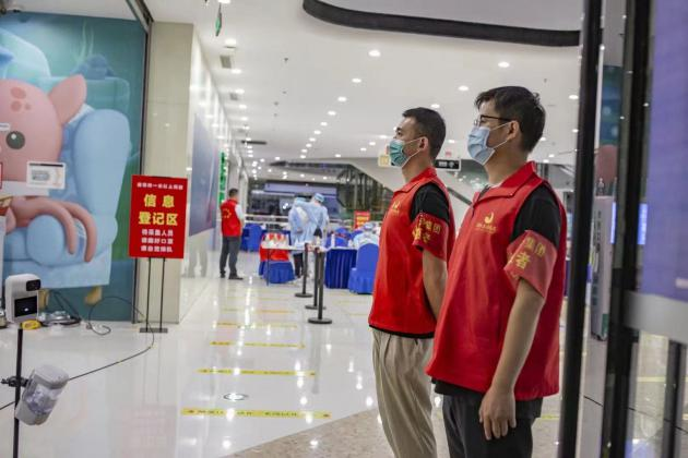 到核酸檢測點(diǎn)去:“注意相互間隔、出示蘇康碼。”身穿紅馬甲的志愿者,在核酸檢測隊(duì)伍中,提醒市民帶好口罩,注意防護(hù),對相對聚集的區(qū)域及時限制前行速度,拉開間隔,防止交叉感染。