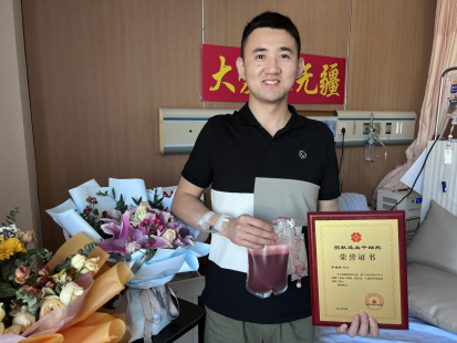 早在2021年周超然就已經(jīng)成功登記成為中國造血干細(xì)胞捐獻(xiàn)者資料庫的一員。2022年3月,正在疫情值崗的他突然接到了市紅十字會的電話,詢問他是否愿意為一名血液病患者捐獻(xiàn)造血干細(xì)胞,周超然毫不猶豫地答應(yīng)了。2022年5月12日,市紅十字會、區(qū)紅十字會及水務(wù)集團(tuán)專門為周超然舉辦了捐獻(xiàn)歡送儀式。5月17日上午,周超然成功完成了造血干細(xì)胞捐獻(xiàn),為病患及其家庭帶去生活的希望。