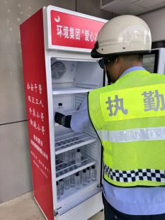 愛心一瓶水,清涼一座城,致敬高溫“烤”驗下堅守崗位的戶外勞動者。今年7月底,溧水環境集團啟動“愛心冰水”送清涼行動,在城區部分城市驛站、公共服務大廳、銀行網點等16處人流密集處投放了十幾臺冰柜,滿載可免費取用的溧水本土瓶裝飲用水“無想山泉”,為公安干警、外賣小哥、環衛工人、快遞小哥等戶外高溫工作者持續送清涼,讓他們在酷熱的盛夏感受城市的關心和關懷。