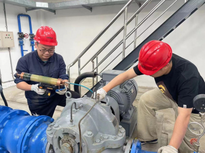 在嘈雜轟鳴的機器運轉(zhuǎn)聲中,廠站維護中心工作人員不停忙碌著,為確保供水設(shè)備安全穩(wěn)定運行,他們每天都要對機泵設(shè)備進行細致檢查和維護保養(yǎng),節(jié)日期間更是默默堅守。