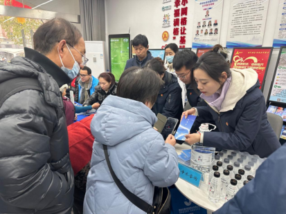 過來咨詢供水服務的居民絡繹不絕,公司工作人員邊耐心解答、邊給居民講解節水小知識,并推廣集團微信公眾號及掌上營業廳,引導居民使用掌上營業廳來便捷繳扣水費、查看各類用水信息,讓用戶零跑腿;并向居民宣傳來自溧水的天然飲用水品牌–無想山泉。志愿者還走入居民家中檢測水質,解答居民用水疑問。